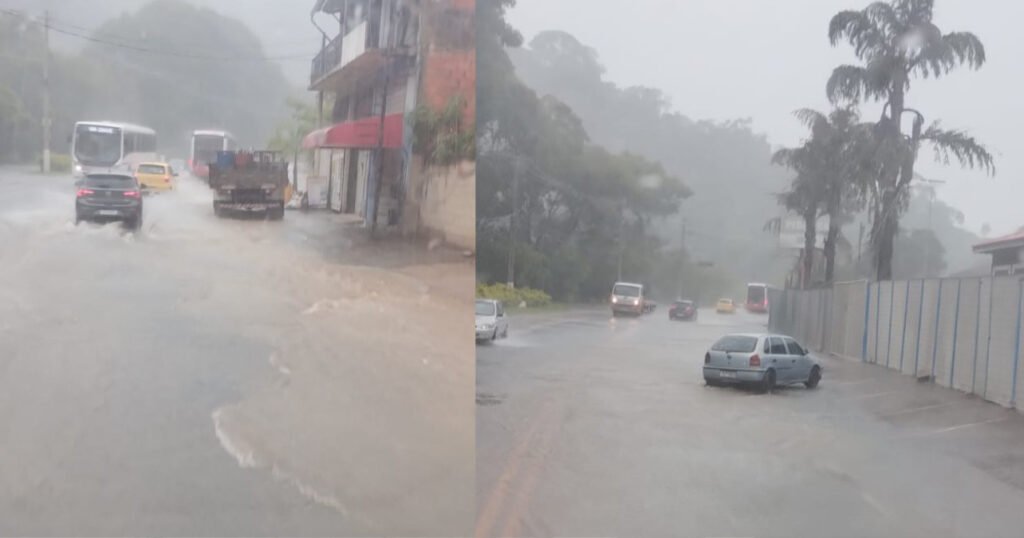 Chuva provoca alagamento na Avenida Nelson Gulla, na tarde desta sexta-feira (02).  Outros pontos da cidade também sofreram alagamentos.
