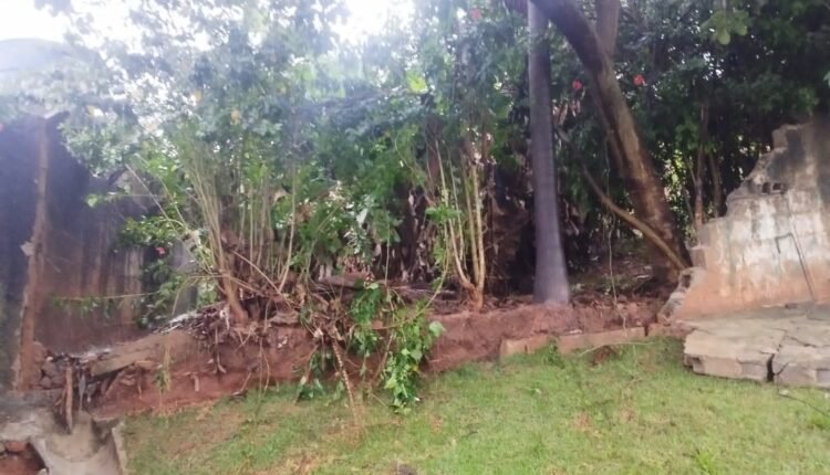 A chuva foi tão forte que acabou derrubando o muro da CEMEB Palmyra, que está localizada no bairro Vila Popular.