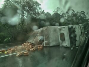 Nesta segunda-feira (06) devido à chuva forte que atingiu a nossa região, um caminhão acabou tombando na Rodovia Anhanguera, próximo a cidade de Cajamar.