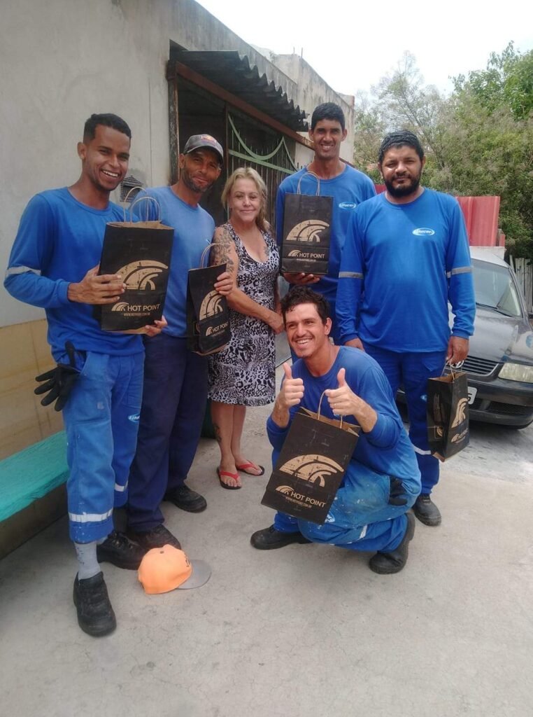 A equipe de coleteres do bairro Cidade Nova II, gostaram e muito do presente e até tiraram uma fotografia com a nossa amiga.