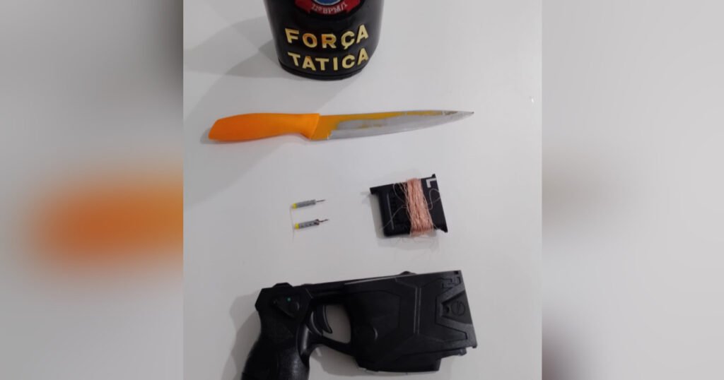 Com o uso da arma de incapacitação neuromuscular, mais conhecida como taser, o indivíduo foi imobilizado.