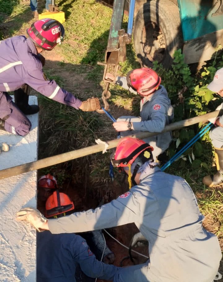 Na tarde deste domingo (02), equipes do Corpo de Bombeiros, Agentes da Defesa Civil de Várzea Paulista e Bombeiros GBCV, foram mobilizadas para resgatar um boi que acabou caindo em uma vala no bairro Jardim Diana, em Várzea Paulista.