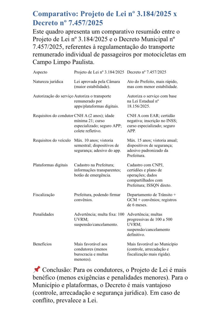 Após o vereador Júnior Itiban apresentar um projeto que regulamenta a atividade no município, o prefeito Adeildo Nogueira (PL) editou um decreto próprio, que além de regulamentar, cria taxas e exigências adicionais aos motociclistas.