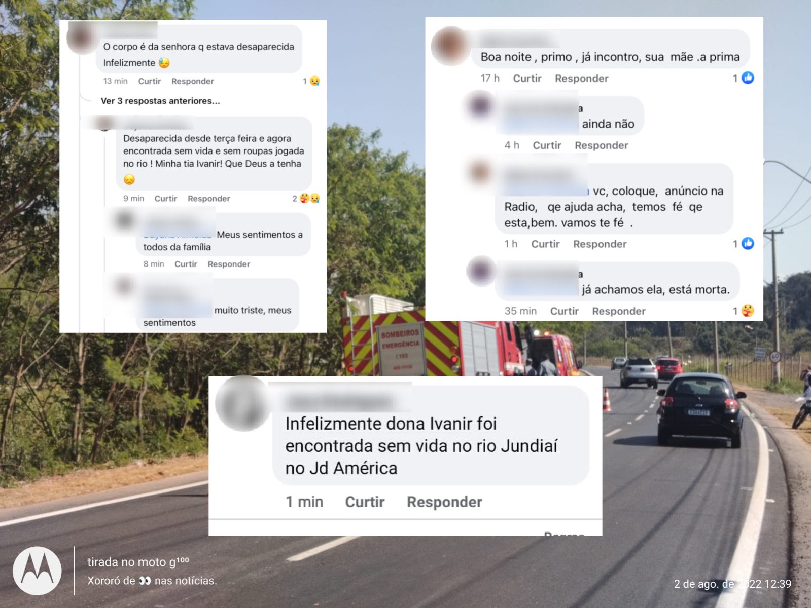 Segundo informações divulgadas nas redes sociais, por familiares da idosa, o corpo seria da Dona Ivanir de Almeida Ferreira, de 72 anos.
