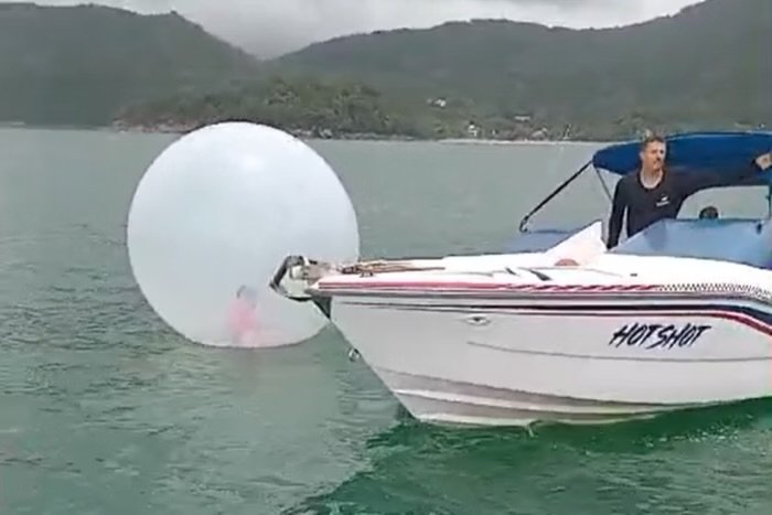 Um marinheiro estava em um passeio de lancha com os filhos quando avistou a boia no meio do mar e decidiu se aproximar para ver se alguém estava dentro dela.