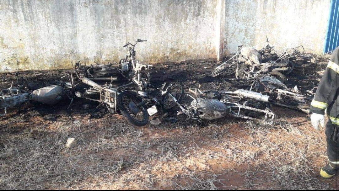 Crianças de 9 e 10 anos jogam bomba e incendeiam 10 motos em pátio