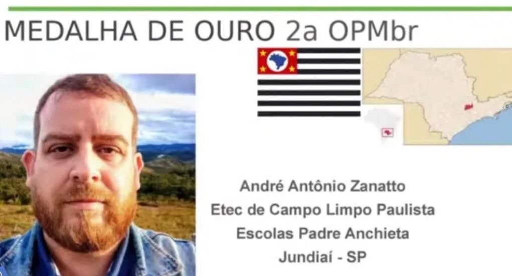 O professor André Zanatto (@prof_andre_zanatto), da Etec de Campo Limpo Paulista, conquistou medalha de ouro na Olimpíada Brasileira de Professores de Matemática (OPMbr), destacando-se entre os educadores de todo o país.