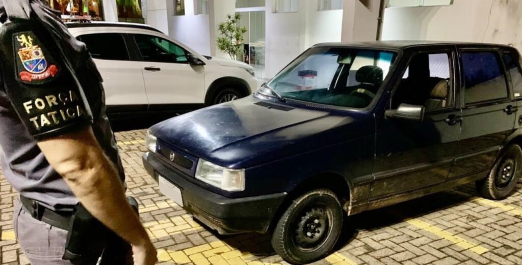 A equipe tentou a primeira abordagem pela rua Engenheiro Monlevade, quando o infrator avistou a viatura e acelerou o veículo para se evadir, porém pela rua XV de Novembro foi possível interceptar o carro Fiat/Uno.