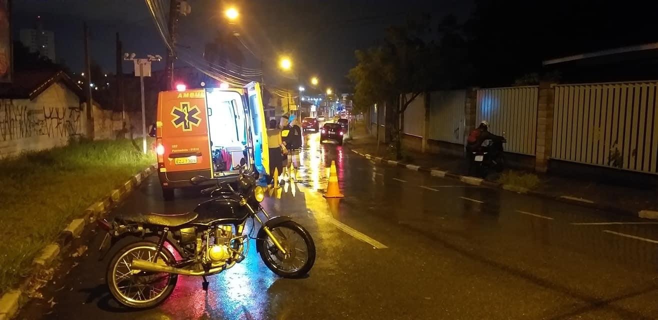 Devido a pista molhada, motociclista perde o controle e sofre acidente nesta quarta (26)