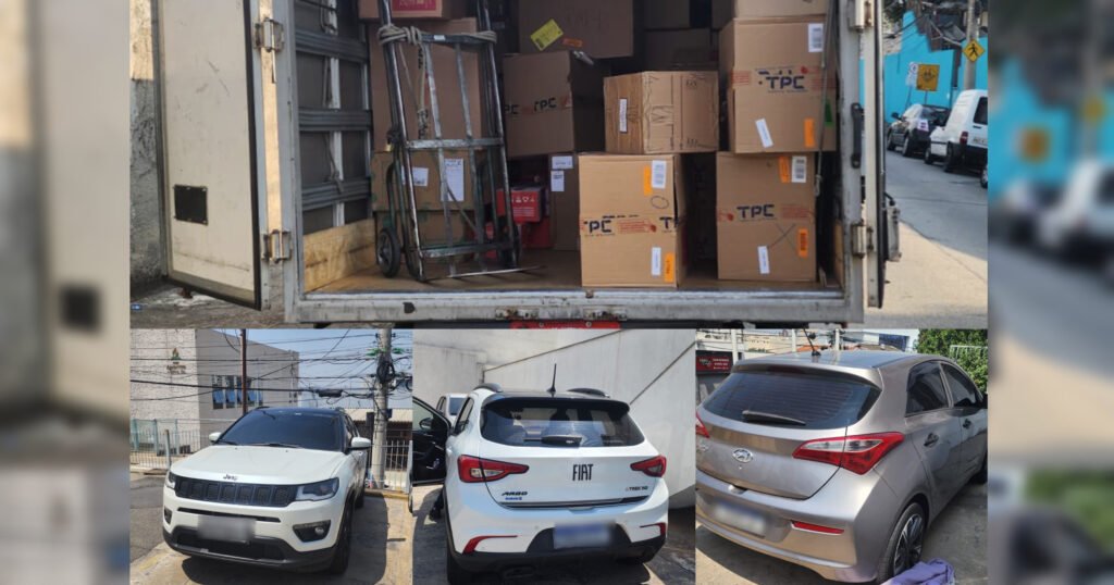 Dentro do HB20, a equipe localizou parte da carga (tênis e roupas), que havia acabado de ser roubada do caminhão.