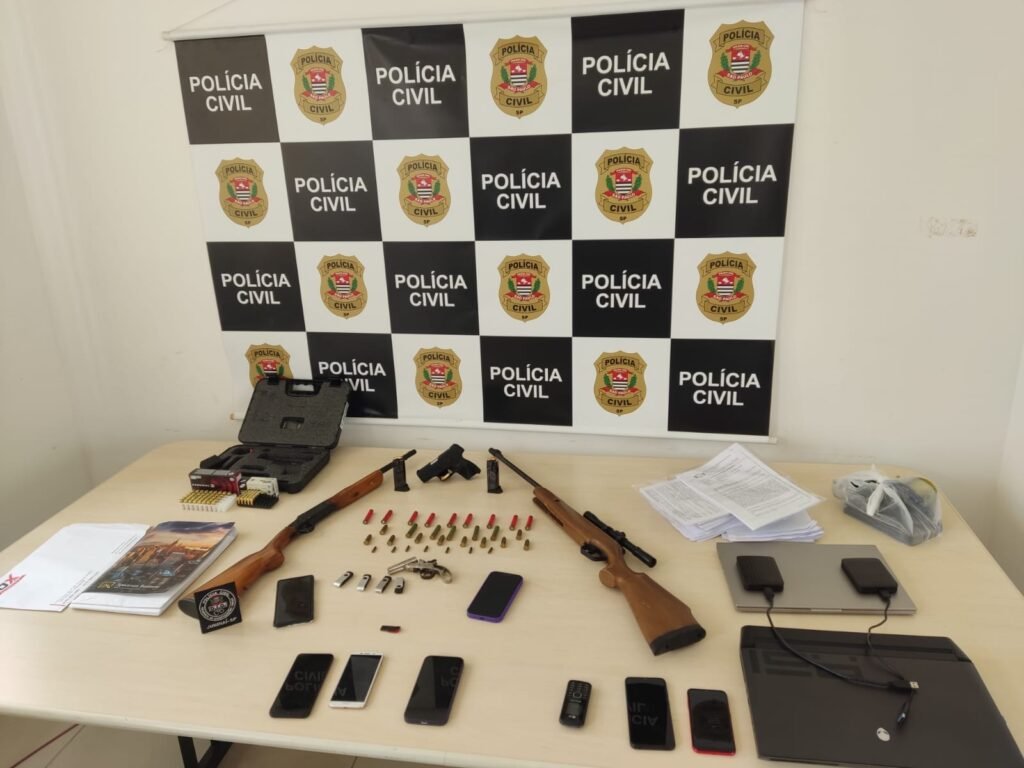 Foram apreendidas armas de fogo, munições e aparelhos eletrônicos (celulares e notebooks) que servirão para dar continuidade às investigações.