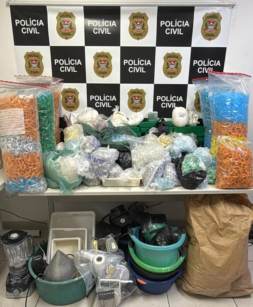 Foram apreendidos mais de 50 quilos de entorpecentes em inúmeras porções de grande porte, 10 mil porções de entorpecentes prontas para serem entregues, além de materiais para embalo e preparo do entorpecente.