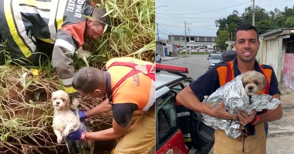 Em ato heroico, Bombeiros Voluntários e Agentes da Defesa Civil salvam a vida de cãozinho.