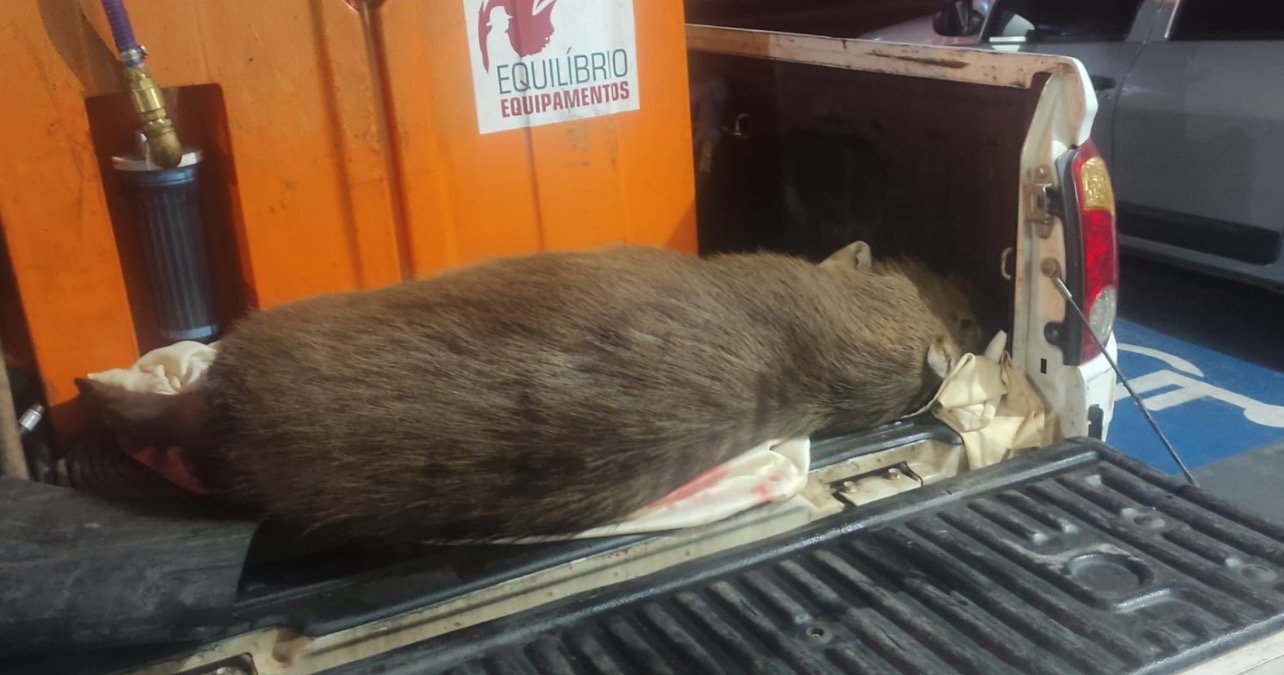O animal resgatado foi sedado e será entregue na mata ciliar, para receber todos os cuidados necessários e para ser solto na natureza.