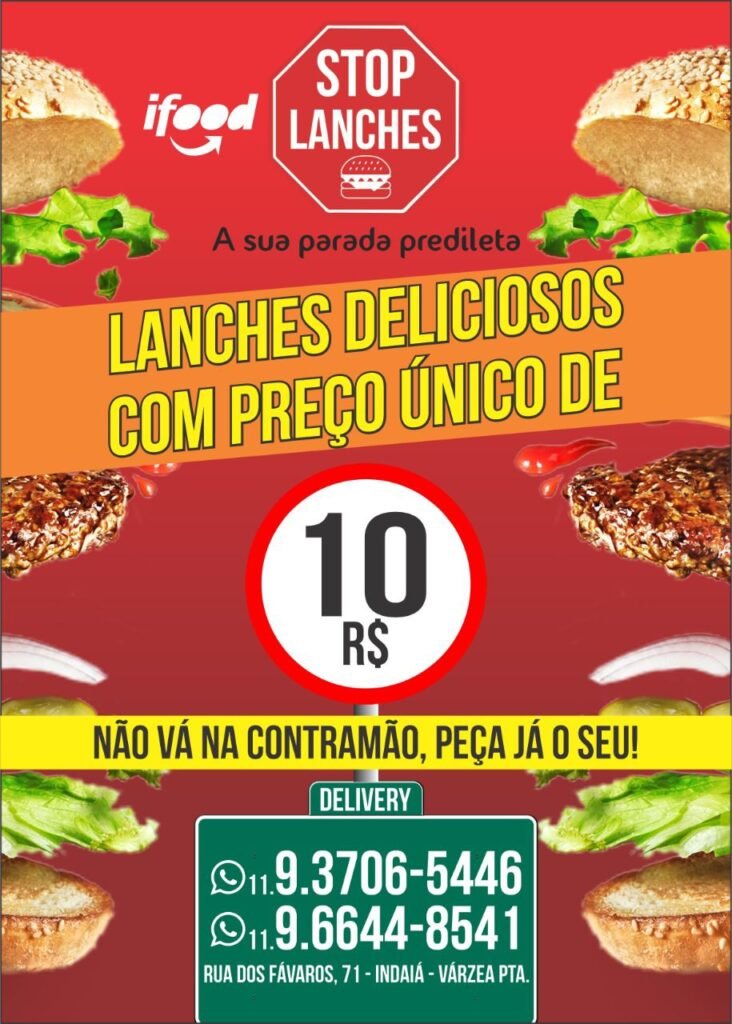 O proprietário da lanchonete STOP Lanches, Diego, disse ao estagiário que todos os lanches são vendidos pelo preço único de R$ 10,00. Todos feitos com muito carinho e com produtos de qualidade, além de manter um preço acessível a todos os clientes.