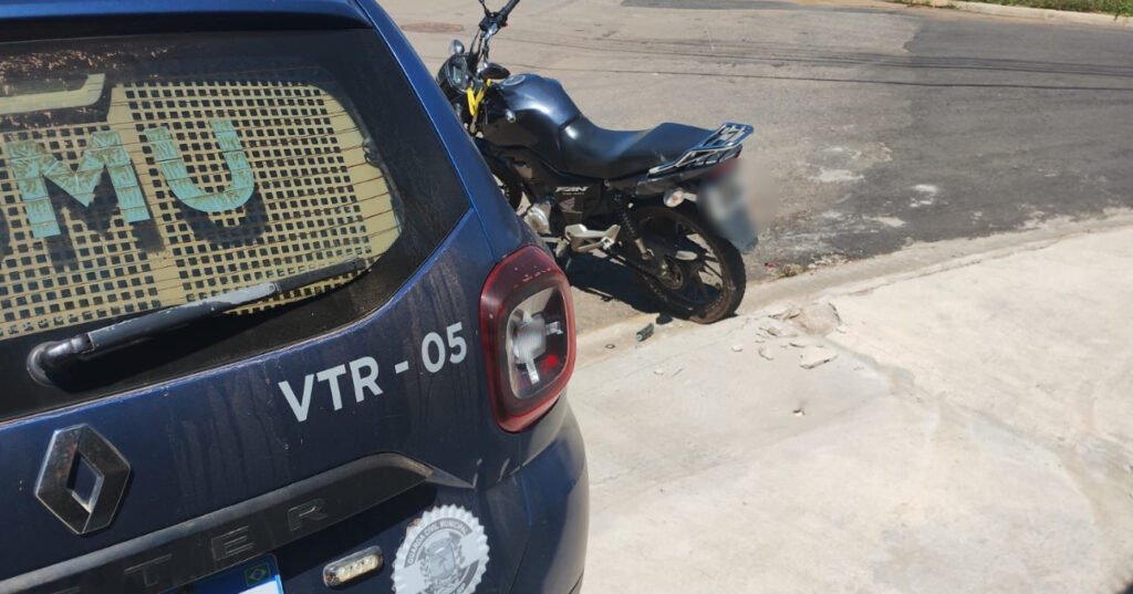 Ao adentrar a via principal, deparou-se com um indivíduo em uma moto que, ao notar a aproximação da viatura, empreendeu fuga. Acompanhado, o mesmo, em momento de fuga, tirou algo de suas vestes e jogou na via. Nesse momento, descontrolou-se e colidiu com o meio-fio, vindo ao solo. Mesmo assim, tentou a fuga, mas foi detido.
