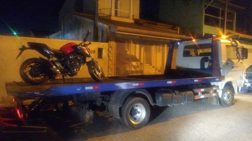 Como a motocicleta estava com o escapamento adulterado e havia fugido dos policiais, a motocicleta foi autuada e apreendida.