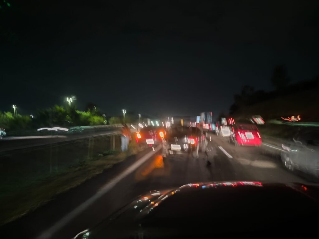 Devido ao engavetamento, o trânsito segue lento e os motoristas devem redobrar atenção.