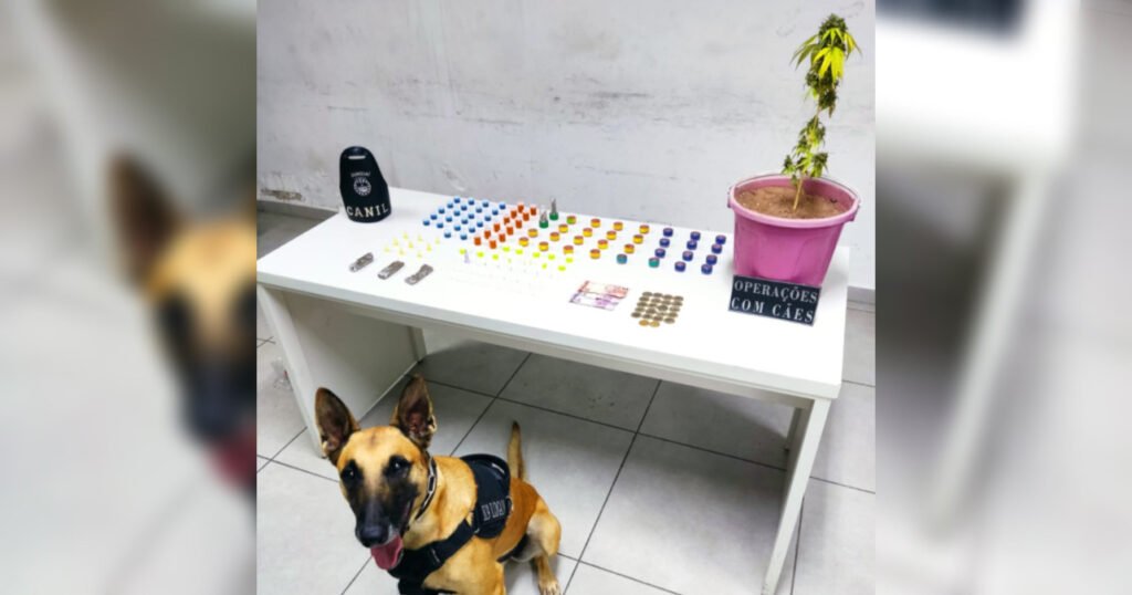 A equipe empregou o faro do k9 Logan, onde foi localizado porções de drogas, dinheiro e até um pé de maconha.