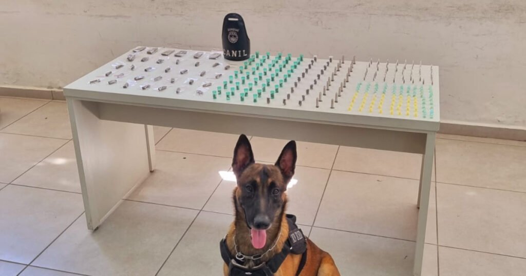 Equipe do Canil, com o apoio do K9 Red, apreendeu drogas nas próximo à EMEB em Jundiaí.