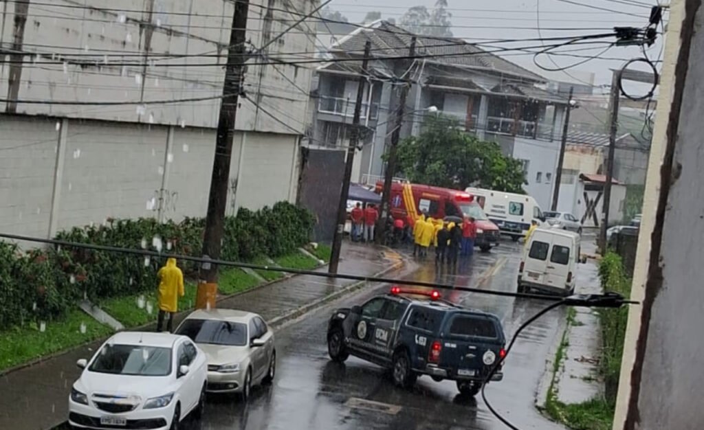 Na manhã desta sexta-feira (08) chuvosa, equipes do Corpo de Bombeiros, Guardas Municipais, SAU, Bombeiros Voluntários e Defesa Civil realizaram um simulado de emergência.