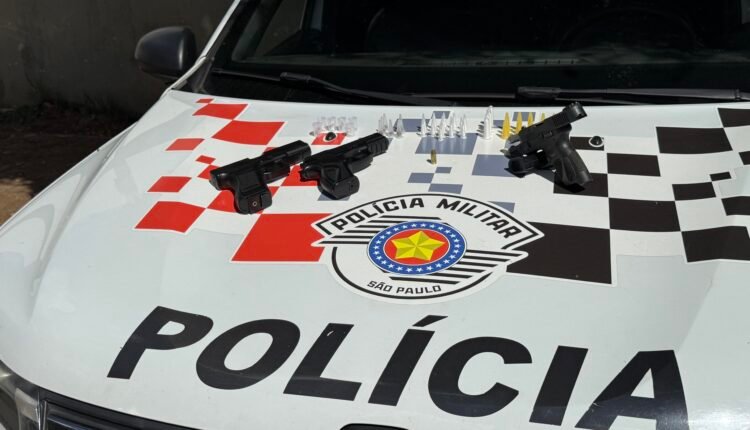 Em continuidade à ocorrência, o homem informou que o carregador estaria em seu veículo. Durante a busca, os policiais localizaram não apenas o carregador, mas também dois simulacros de arma de fogo e uma quantidade de drogas.