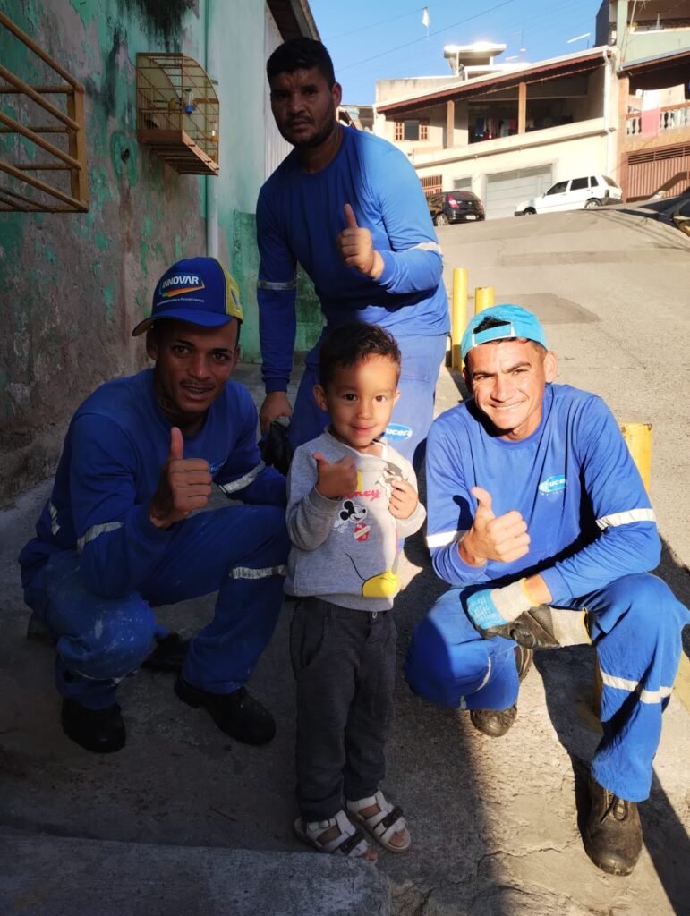 O pequeno fez questão de tirar uma fotografia com o seus novos amigos, os coletores de lixo do município. A mãe diz que, Felipe é um fã dos guerreiros coletores e toda vez que eles passam na rua, ele faz questão de cumprimentar