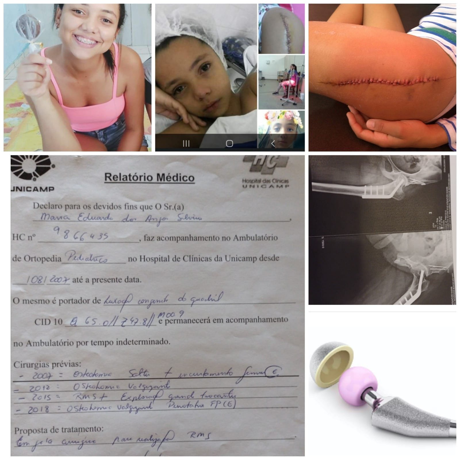 Ela já passou por 5 cirurgia no fêmur onde teve que colocar uma prótese para correção do osso do fêmur e quadril , já passou por vários tratamento desde 1 ano de idade, pois o fêmur dela não desenvolve normal .