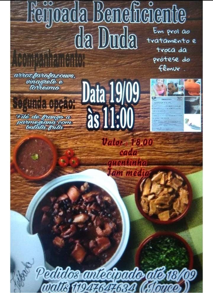 A família está realizando uma feijoada para arrecadar dinheiro, uma vez que ela precisa realizar exames, também tem a questão da locomoção.