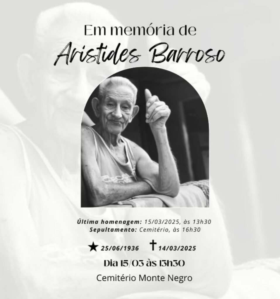 Na tarde de ontem (14), uma triste notícia pegou todos de surpresa: faleceu o Sr. Aristides Barroso, de 88 anos.