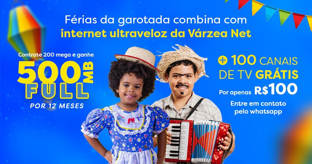 A Várzea Net está com uma promoção especial e que pode ser a alegria dos pequenos nessas férias de julho. Na contratação de 200mb, você leva 500mb FULL (download igual a upload) por 12 meses.