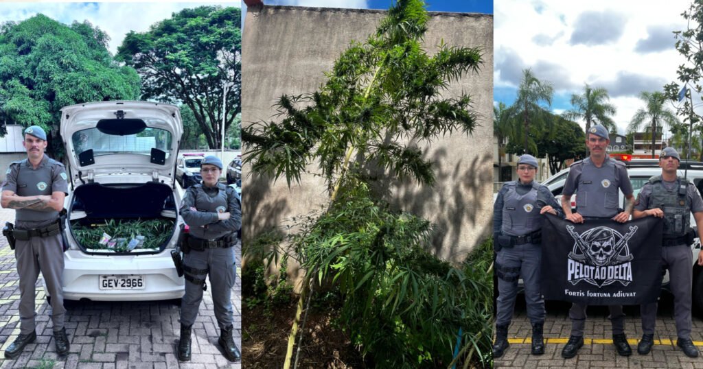 Os policiais foram até os fundos do imóvel, com autorização da vítima, onde localizaram uma plantação de maconha, além de recipientes para a comercialização da droga.