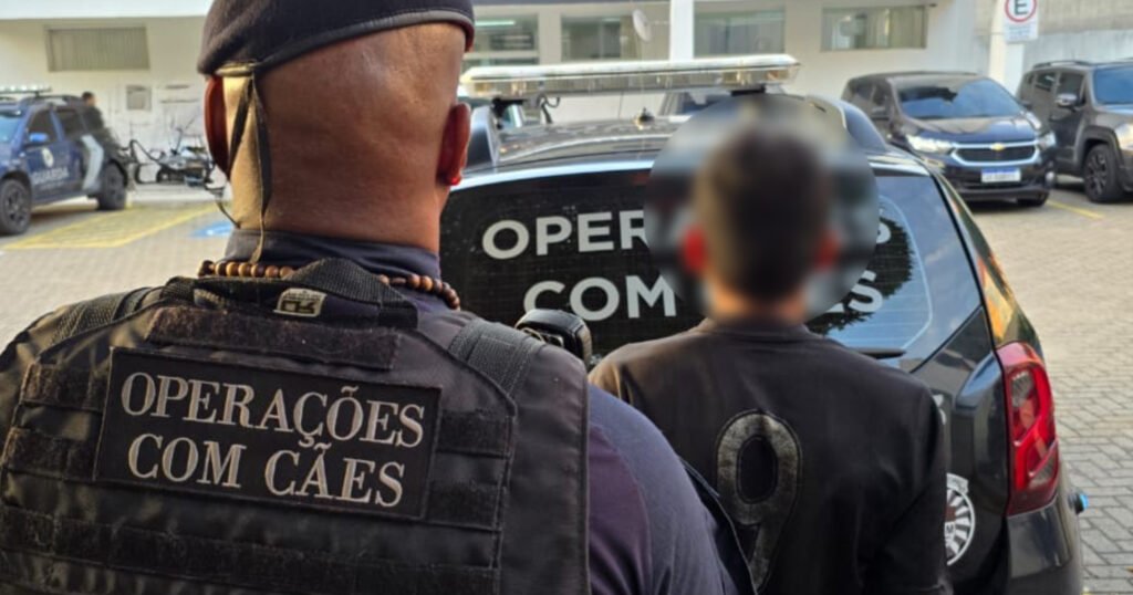 Foragido se assusta com a viatura, tenta correr, mas acaba preso pela equipe do Canil.
