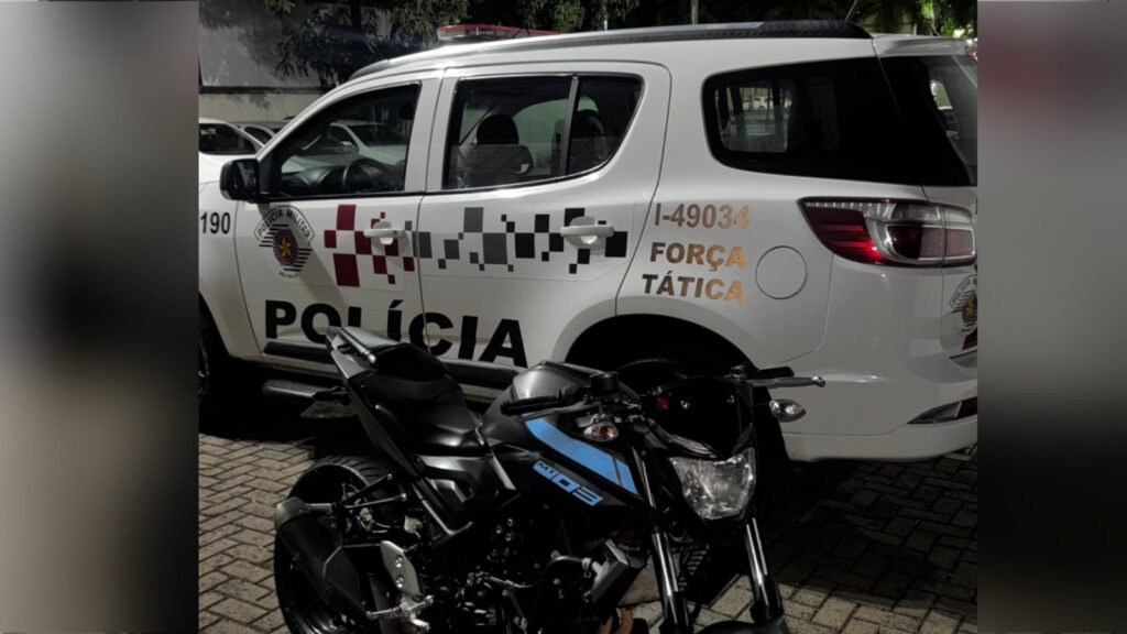 Policiais Militares do 1º Pelotão de Força Tática do 49º BPM/I (SGT Xavier, CB Sadao e SD José) estavam realizando um patrulhamento tático nesta sexta-feira (13) pelo bairro Jardim Tamoio, em Jundiaí. Foi notado um indivíduo que, ao ver a viatura, adentrou rapidamente a um bar, momento em que a equipe seguiu no seu encalço e realizou a abordagem ao comércio, notando que ali havia uma motocicleta guardada.