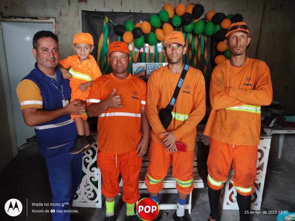 De acordo com seus pais, o pequeno Luiz é fã dos coletores de lixo do bairro. Ele fez questão que os coletores estivessem presentes na sua festa.
