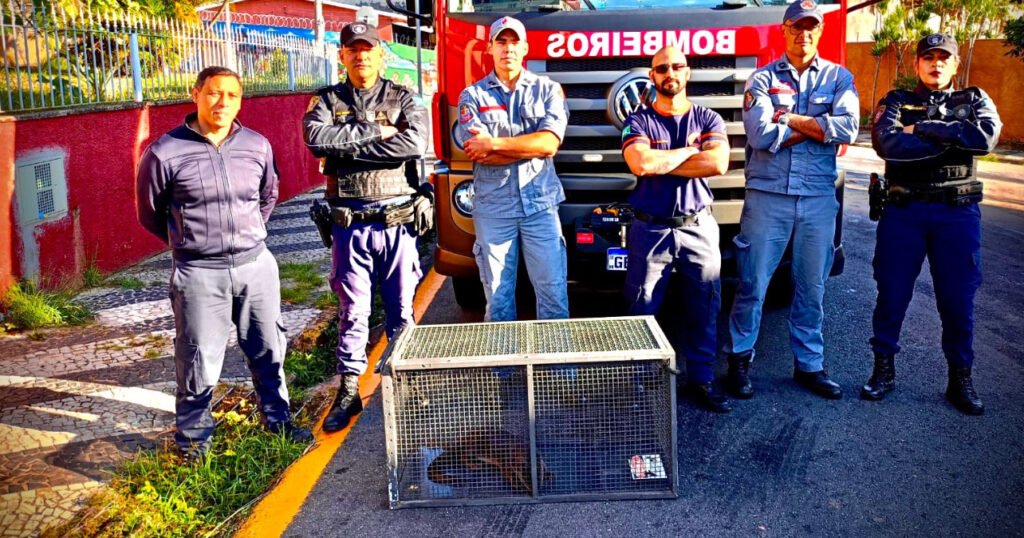 Os patrulheiros acionaram o Corpo de Bombeiros e a Defesa Civil que, numa ação conjunta, fizeram o resgate seguro do animal.