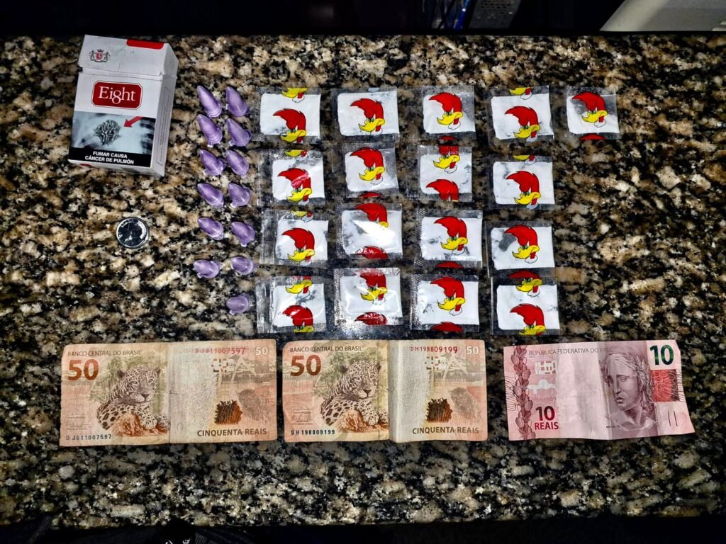 Os dois foram apresentados na delegacia de polícia, onde a autoridade autuou ambos por tráfico de drogas e ameaça.