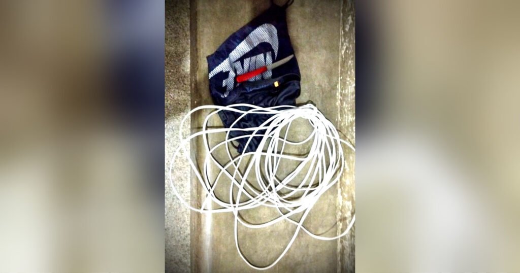 O suspeito foi abordado e, durante a busca pessoal, foi localizado com ele cerca de 10 (dez) metros de fio que fazia parte do enfeite de Natal, e as ferramentas utilizadas para o cometimento do crime.