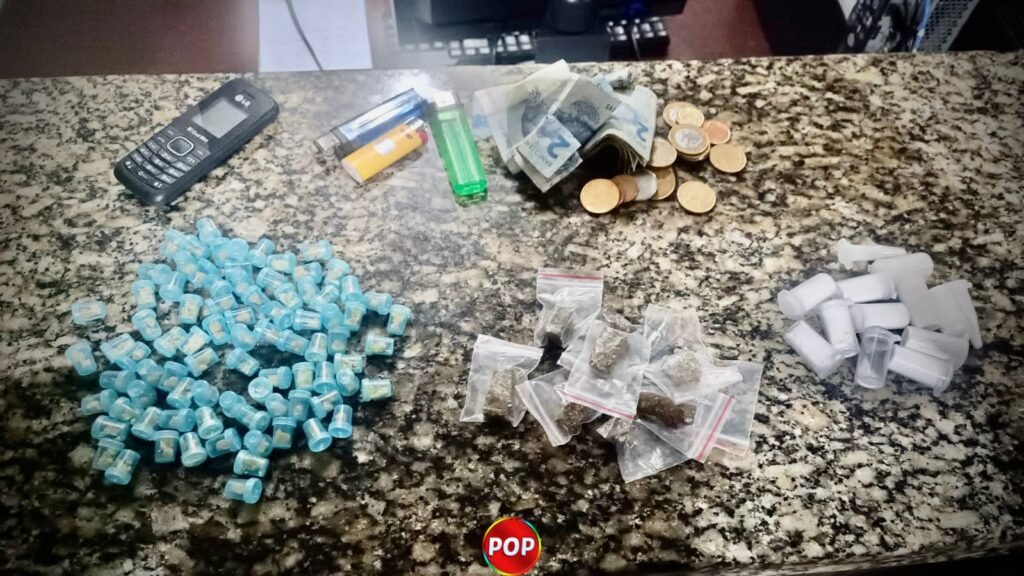 Na noite de ontem (07), a equipe da viatura 440 (GCM Nascimento e Alex), da Guarda Civil Municipal, realizava patrulhamento pela VIla Constança quando notaram dois indivíduos que se assustaram com a presença dos patrulheiros. Diante dos fatos foi realizada a abordagem e busca pessoal, sendo localizado 84 (oitenta e quatro) pedras de crack, 10 (dez) invólucros de maconha, 13 (treze) tiveres de cocaína e R$ 28,10. Ao realizarem a identificação dos infratores, constataram que um deles era PROCURADO DA JUSTIÇA. Conduzidos a delegacia, foram autuados em flagrante pelo crime de tráfico de drogas e recolhidos a carceragem.