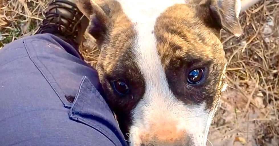 O cãozinho, da raça Pitbull, estava amarrado em uma corrente em um corredor estreito onde havia uma casinha, cujo tamanho não era compatível e, como não contava com cobertura, ele ficava sob as intempéries.