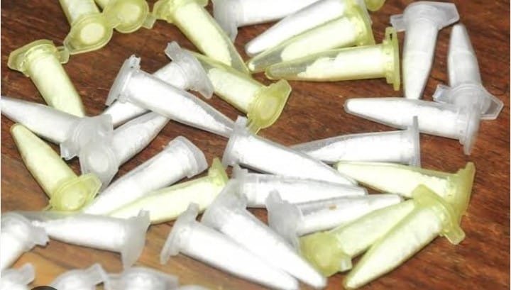 A equipe decidiu averiguar a mochila, dentro dela foi localizado quase 50 porções de cocaína, pronta para venda.