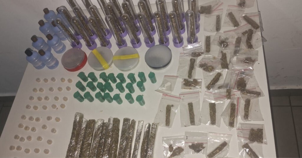 Na sacola, foi encontrada e apreendida a seguinte quantidade de, aparentemente, entorpecentes: