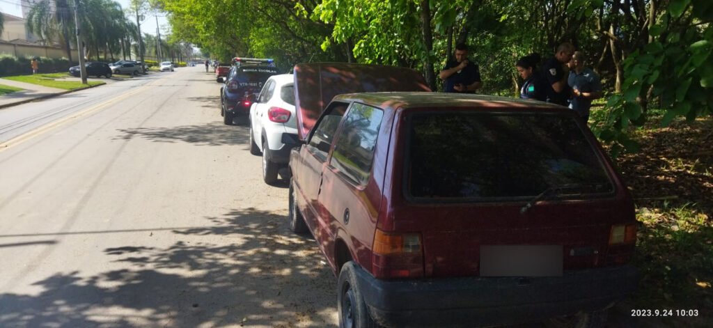 Os Guardas Municipais Luiz Fernando, John e Agnes, estavam realizando um patrulhamento preventivo pelos pontos de provas do concurso da guarda municipal de Jundiaí, que ocorre neste domingo (24), quando avistaram um veículo Fiat Uno, abandonado na Avenida Federico Ozanan, próximo a UNIP.