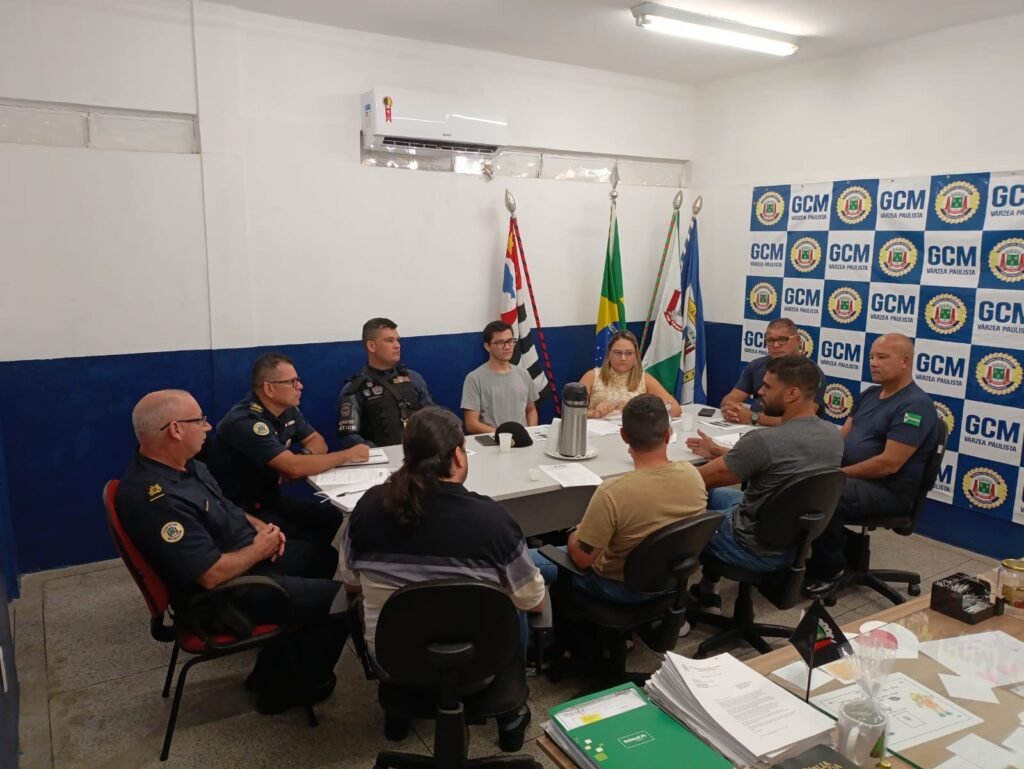 Esteve presente na reunião o comandante Dejair Pellini, o subcomandante Alex Godoi, Ana Letícia, coordenadora da escola de governo, Dr. Plínio, psicólogo da Rede, e os subinspetores Nabas e Wladimir, além do guarda municipal de Jundiaí, Marassato, que aplicará a aula de balística e munições, o GCM da cidade de Cotia, Laurez, e o avaliador da Polícia Federal, Sr. Evandro Damião.