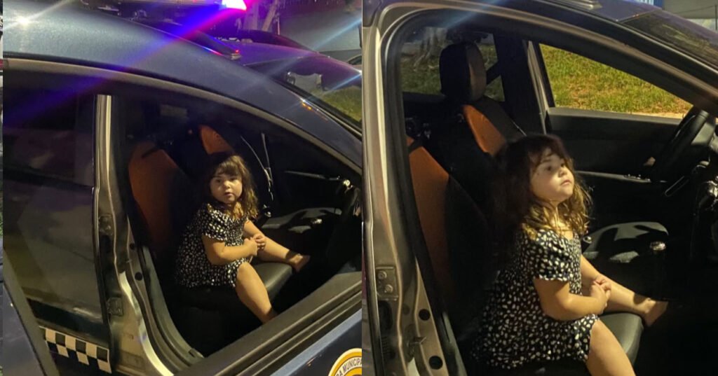A equipe da Guarda Municipal deu toda a atenção à garotinha; ela ainda tirou uma foto da viatura, e a mãe agradeceu à equipe.
