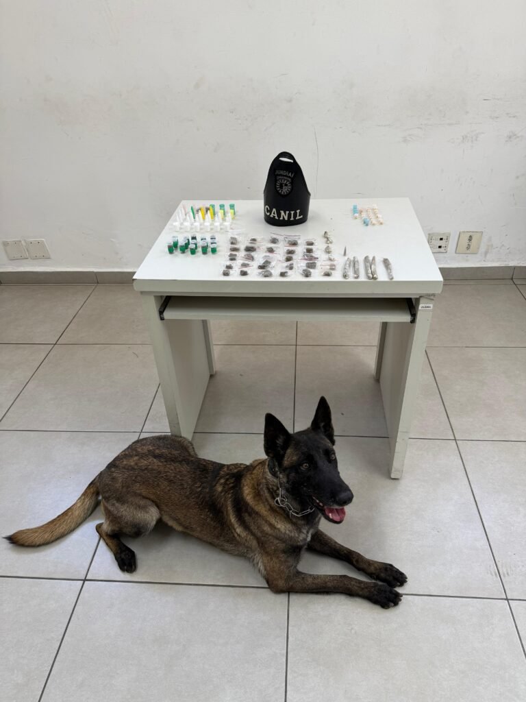 A equipe do Canil da Guarda Municipal de Jundiaí (GMs Julio, Ferreira e Willians), sob supervisão do subinspetor Cristiano, realizava patrulhamento pela Vila Comercial quando se deparou com um indivíduo carregando uma sacola. Ao avistar a equipe, ele largou a sacola e tentou fugir. Durante a perseguição a pé, o suspeito atravessou a movimentada Rodovia Anhanguera e invadiu duas residências no bairro Jundiainopolis, na tentativa de despistar os guardas. Com apoio das viaturas do Canil e do plantão, foi montado um cerco ao redor das residências. A equipe conseguiu deter o indivíduo, que ainda tentou resistir à prisão. Foram apreendidas 110 porções de maconha, cocaína e crack, e o suspeito foi preso em flagrante por tráfico de drogas.