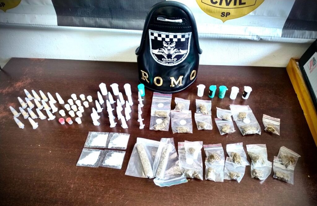 O infrator foi alcançado e com ele foi localizado 32 (trinta e dois) tubetes de crack, 23 (vinte e três) eppendorfs de cocaína e 33 (trinta e três) invólucros de maconha, o que ensejou a voz de prisão.