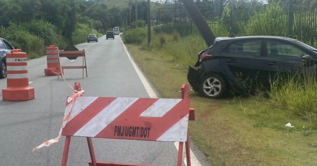 HB 20 colide contra poste de energia elétrica na divisa de Jundiaí com Várzea Paulista.