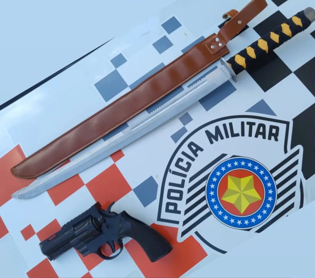 Com autorização da vítima, os policiais realizaram buscas no quarto do imóvel, onde localizaram um facão e um simulacro de arma de fogo. Segundo a adolescente, os objetos eram utilizados pelo agressor para ameaçá-la, e o simulacro também seria usado na prática de outros crimes.
