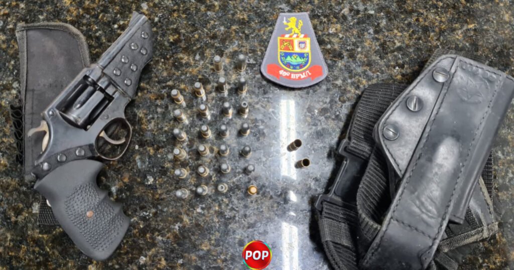 Com autorização do indivíduo e acompanhado a vítima, os policiais abriram o guarda-roupa e localizaram um revólver calibre 38 com número suprimida, com 26 munições intactas as 2 deflagradas.